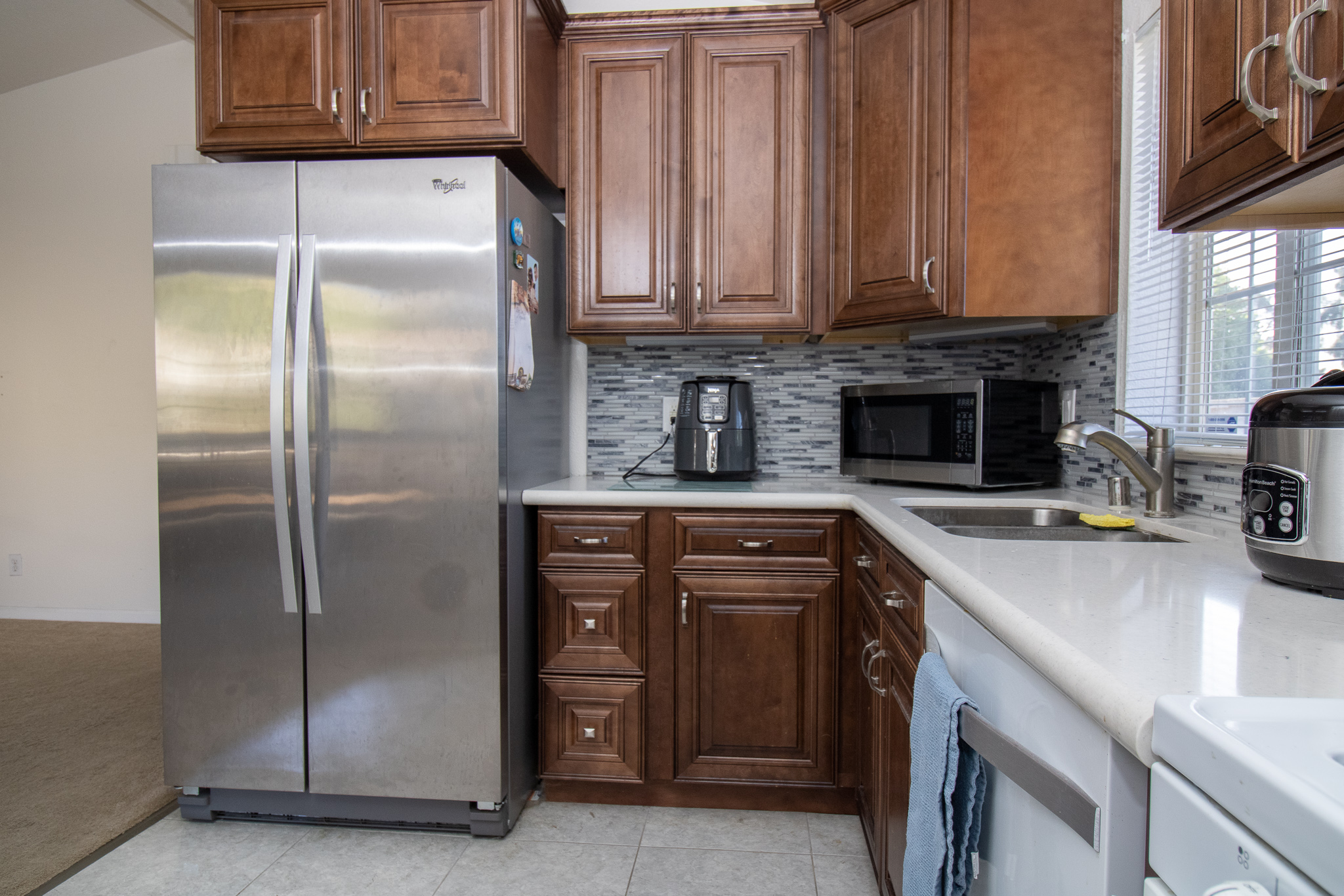 Beautiful doublewide home with 3 bedrooms & 2 full baths build in 2001 with 1176 sqft. Carpet flooring throughout. Vinyl plank flooring in kitchen and bathrooms. Kitchen with appliances. Dining area. Master bedroom suite. Double pane windows. Central air and lot of nature light. Inside Laundry Room with Washer and Dryer. A carport parking with 2 spots. All of this situated in a convenient friendly neighborhood with minutes away to restaurants and shopping centers and major freeways.